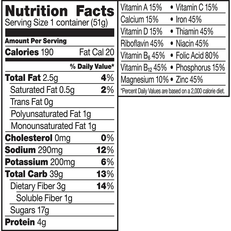 - WHOLE GRAIN: First ingredient is whole grain and fortified with 12 essential vitamins and minerals.