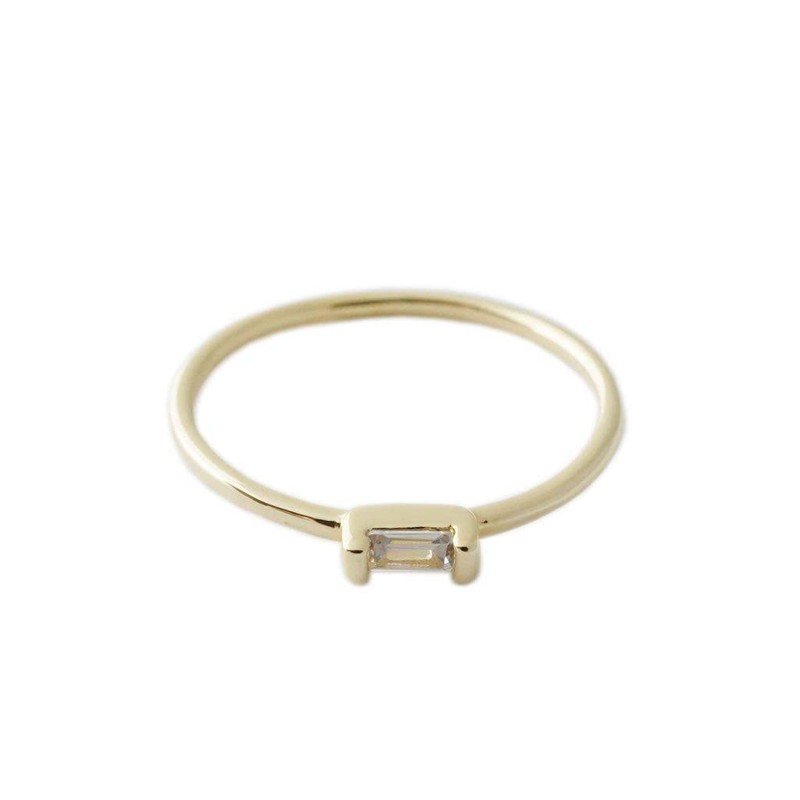Honeycat Tiny Baguette Crystal Ring in 18k Gold Plate | Minimalist, Delicate Jewelry (Smooth/G/8)