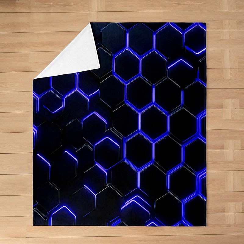 Honeycomb Flannel Fleece Throw Blanket,All Season Hexagonal Blue Black Bed Blanket Geometrical Fuzzy Blanket for Bed Sofa Couch,Bedroom Decor Beehive Geometric Plush Blanket Throw 50"x60"