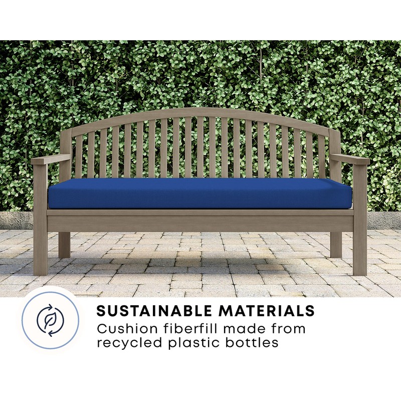 Honeycomb Indoor/Outdoor Textured Solid Sapphire Blue Bench Cushion: Recycled Fiberfill, Weather Resistant, Reversible, Comfortable and Stylish Patio Cushion: 44" W x 18.5" D x 3" T