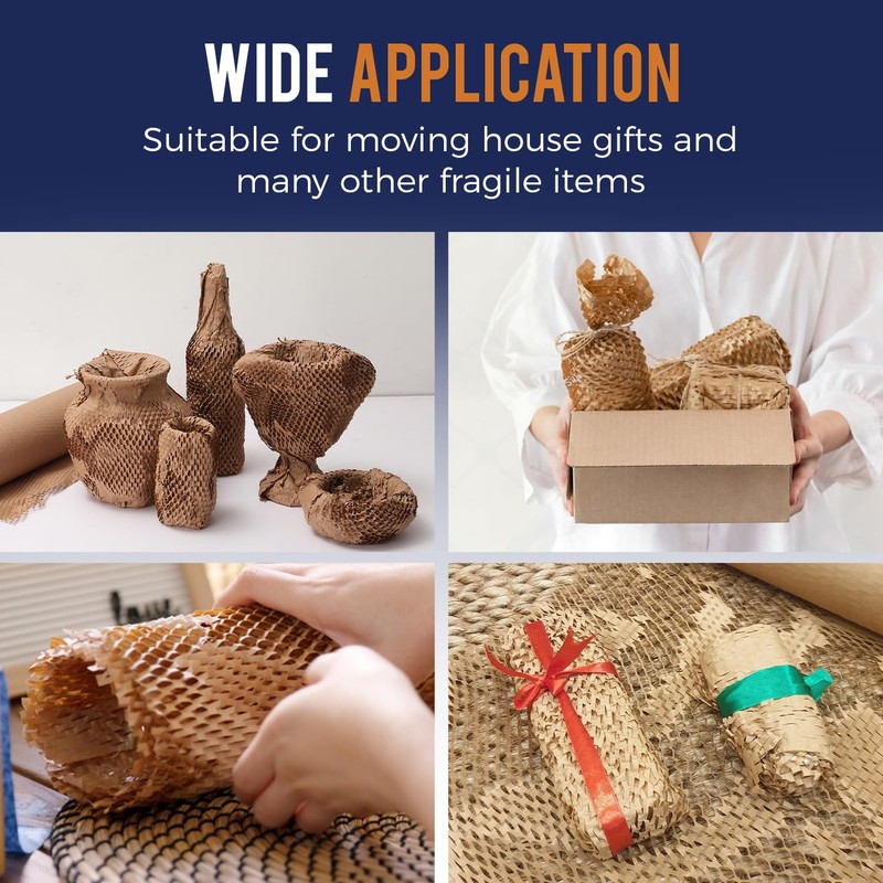 - Eco Friendly Shipping Supplies: Say goodbye to large bubble wrap roll! Our honeycomb wrapping paper for moving essentials offers an eco-conscious alternative. Crafted from 100% recyclable packing materials. This gentle packing paper sheets for moving comes with Jute Rope and keeps your items safe in transit