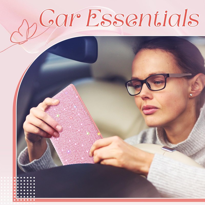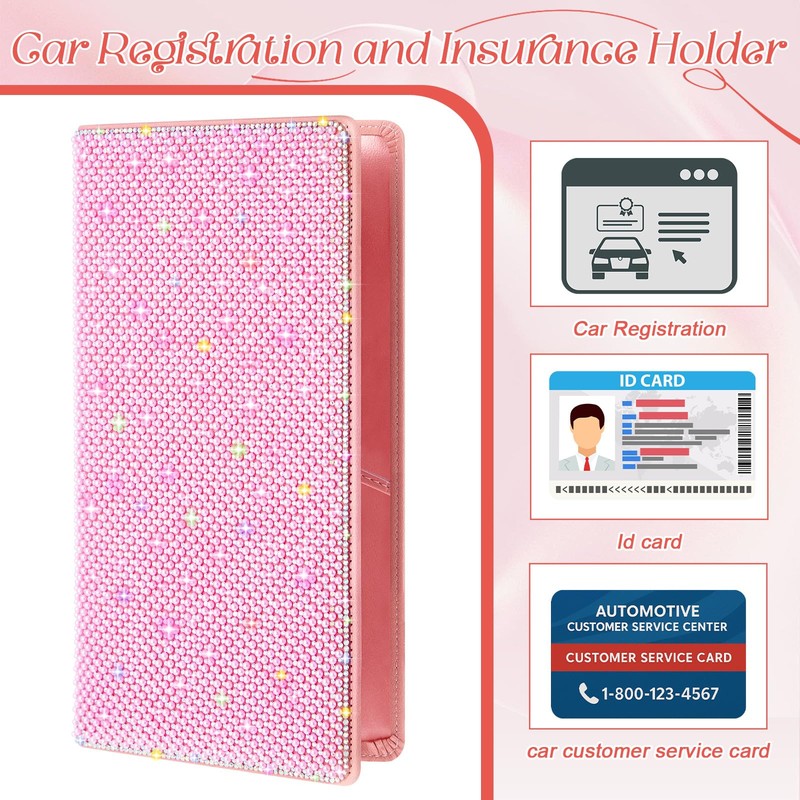 - Bling Car Registration and Insurance Holder: this document holder keeps your car registration, insurance cards, and parking permits neatly organized, while the pearl and rhinestone accents add an elegant touch to your vehicle's interior