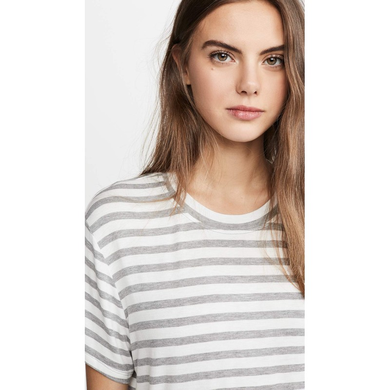 - Striped pattern, Pullover top, Crew neck and short sleeves