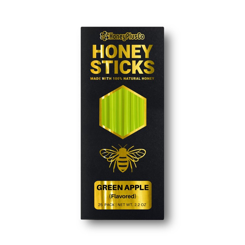 HoneyPlusCo | 100% Natural Honey Sticks - Green Apple (Flavored) - 25 Pcs