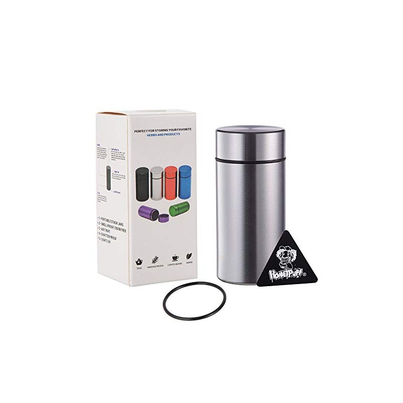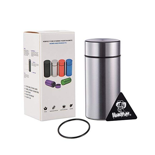Honeypuff Stash Jar (42 ML) Herb Storage Containers Jars with Seal Ring, Airtight Water Proof Aluminum Container to Keep Fresh (Silver)