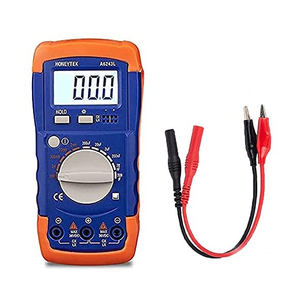 - ✔Capacitor Tester: CE certified professional capacitance meter. Powered by a 9V battery (not included), low power consumption. Large digits LCD display, max 1999.