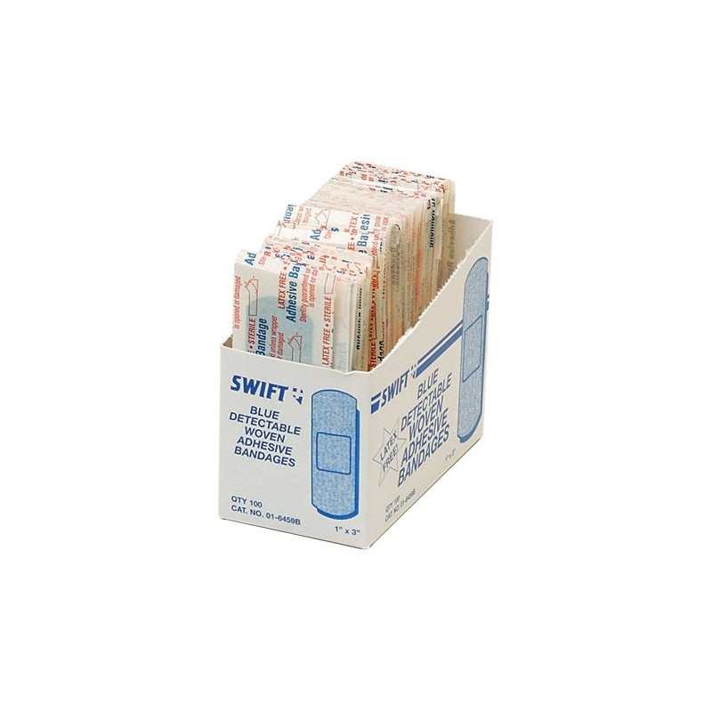 Adhesive Bandage, Blue, Woven, metal detectable, 1" x 3", 100 per box