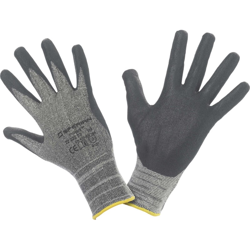 - Black nitrile foam on palm and fingers