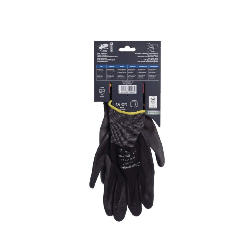 Honeywell 2400251-10/SP PSS Perfect Poly Black General Handling Gloves, Fine Handling in Dry Environment, EN 388 4121 - Size 10 (1 pair, carded)