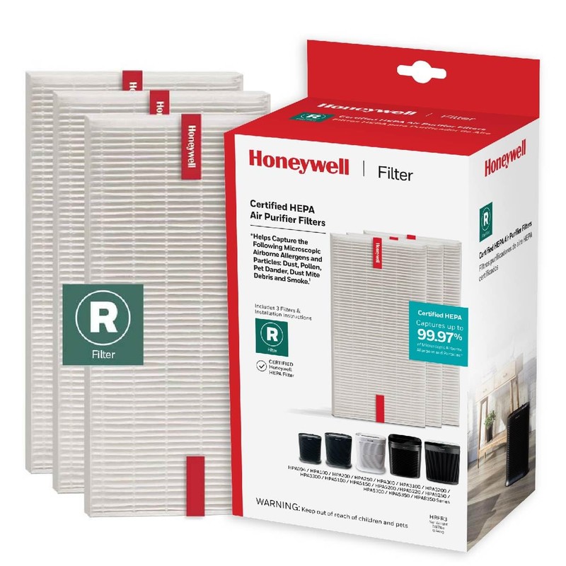 - AIR PURIFIER HEPA FILTER REPLACEMENT – This Honeywell HEPA Air Purifier R Filter helps capture 99.97% of the following airborne allergens and particles: dust, pollen, pet dander, dust mite debris and smoke.*