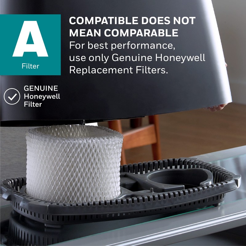 - COMPATIBLE DOES NOT MEAN COMPARABLE C For best performance, use only a genuine Honeywell Replacement Wicking Filter A. Compatible humidifier filter replacements are not guaranteed to offer the same performance or efficiency.