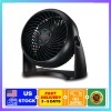 - Black table fan with a sleek and modern look