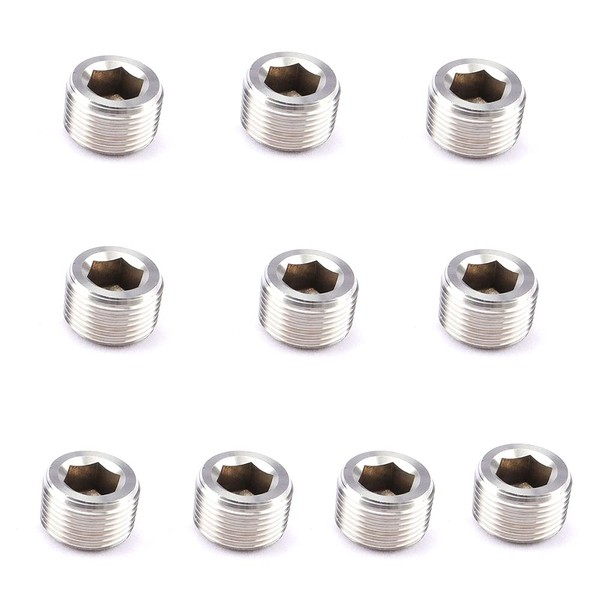 HongBoW Hardware Stainless Steel Internal Hex Countersunk Thread Socket Pipe Plug (1/16 NPT Male, 10)