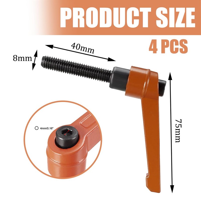 HONGECB Clamping Lever Handle, 4 Adjustable Mounting Handles, M8 Adjustable Clamping Lever with Threaded Bushing, Retaining Lever with Bolts, for Machine Tools, Welding Machines (Clamping Lever M8-40