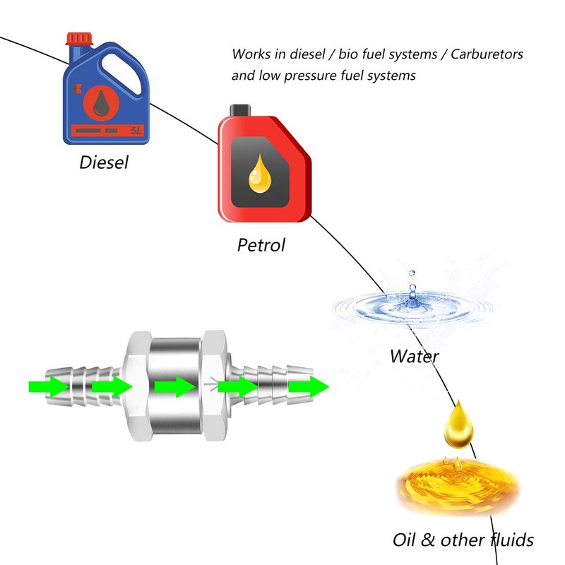 - Professional check valve – suitable for automatic carburettors and low-pressure fuel systems, petrol or diesel disposable fuel valves. Suitable for petrol, diesel, bio / vegetable oil, paraffin / kerosene etc.