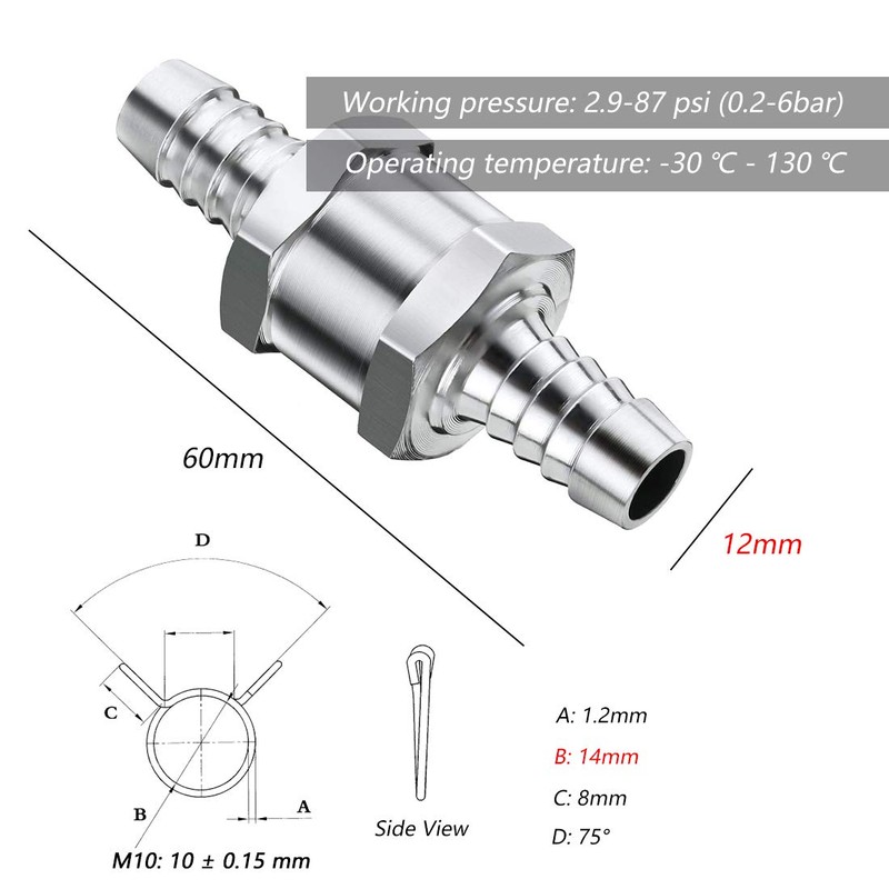 - You can get – 2 pieces 12 mm fuel check valve, 4 pieces 14 mm fuel hose spring clamps