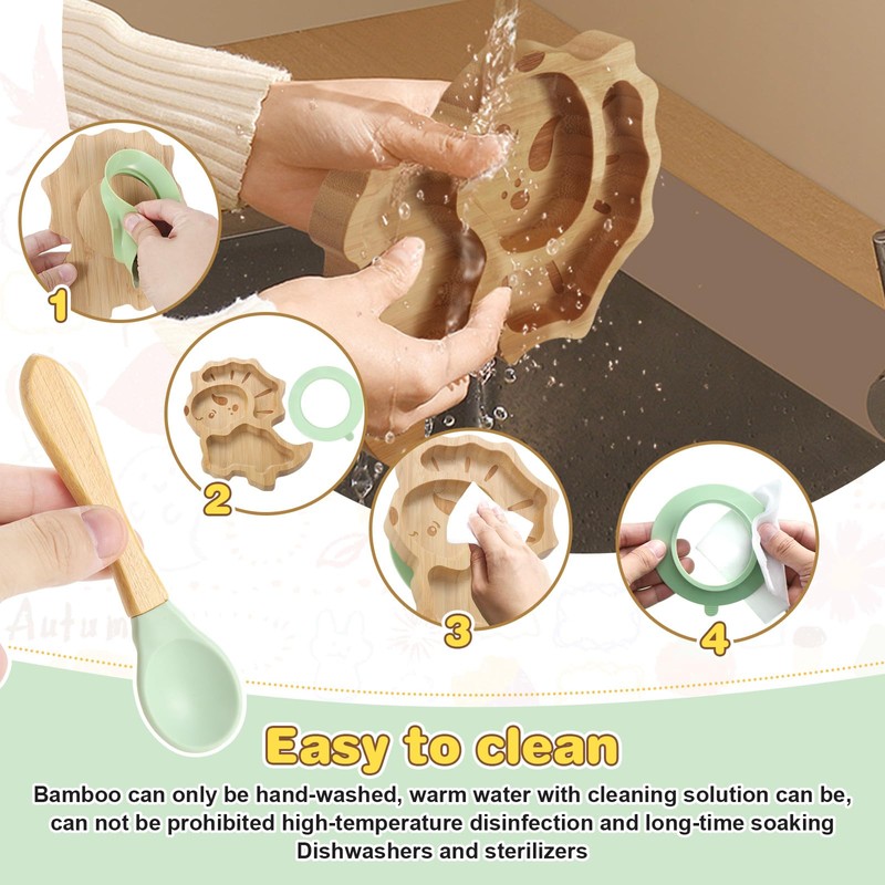 - EASY TO CLEAN: Bamboo baby weaning suction plate spill-proof suction base can be easily disassembled, the surface of the plate is smooth, not sticky grease stains and dirt, rinse with water and wipe it can be.