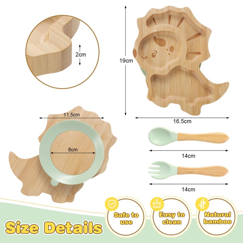 - SAFE TO USE: The bamboo baby suction plate is made of 100% natural bamboo, durable, safe and non-toxic, babies can rest assured that the use; fork and spoon head is made of soft food-grade silicone, which allows babies to learn to eat without harming their mouths, and can increase the baby's interest in eating.