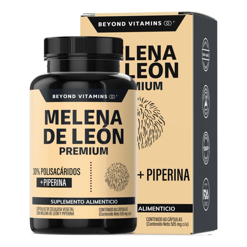 - Presentamos Beyond Vitamins Melena de León Premium, una combinación perfecta de ingredientes premium diseñada para elevar tu rutina diaria a nuevos niveles de vitalidad. Cada porción contiene extracto de Melena de León con 30% de polisacáridos y Piperina al 95% para máxima biodisponibilidad, dos de los tesoros más valiosos de la naturaleza. Melena de León: Un ingrediente fantástico Extraída del micelio y conocida por sus múltiples beneficios, la Melena de León es un producto natural y poderoso. Fórmula Mejorada con Piperina La inclusión de Piperina no es casualidad. Este potente bioenhancer asegura que tu cuerpo absorba y utilice al máximo cada nutriente, proporcionando mayores beneficios en cada cápsula y elevando tu bienestar a nuevas alturas. LOS SUPLEMENTOS BEYOND VITAMINS SON: