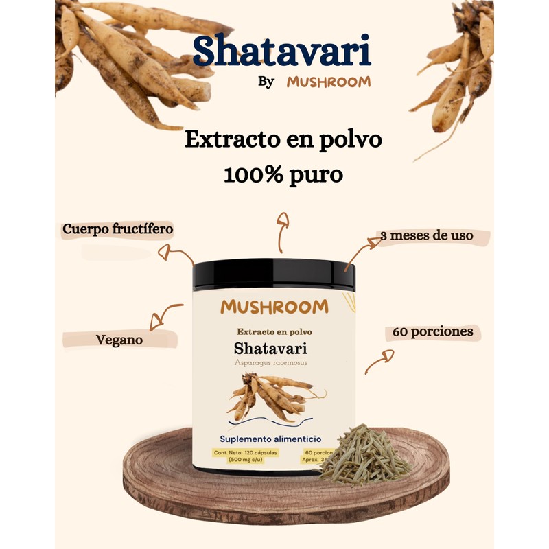 Hongos Adaptógenos - Hongo Shatavari - 120 Cápsulas - Suplemento Natural - Apoya el Sistema Reproductivo Femenino - Más de 5 Meses de Suministr
