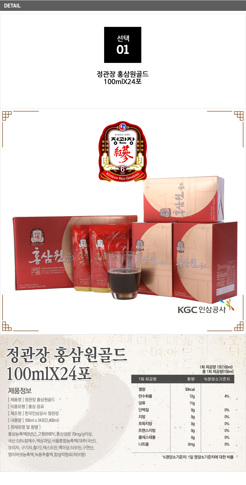 Hongsamwon Gold 100ml x 24 Packets - Gift Set / Gold Jin / 홍삼원골드 100mlX24포-선물세트골드진