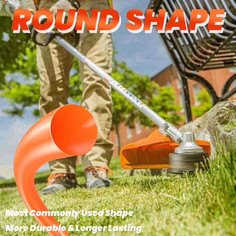- Round Weed Wacker String: The round string line is the most popular line shape with smooth cutting action, which is able to reduce vibration and operational noise. It is also more durable and longer lasting than square ones.
