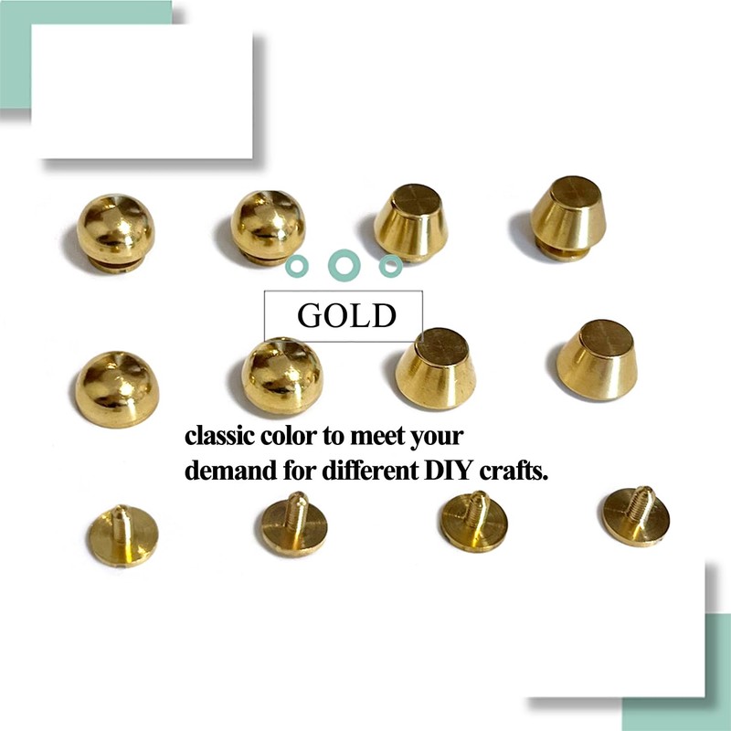 • 【Package Include & Size】The Rivets Stud Handbag Purse Feet packed in a delicate and transparent box. Package include 4 sets in total, including 4 pcs Flat Head-gold + 4 pcs Round gold +8 pcs screws. The handbag Flat nailhead stud Head top diameter 9mm (3/8"), base diameter 12mm (1/2"), height 7mm (1/4").The handbag Round nailhead stud diameter 12mm (1/2"), height6.5 mm(1/4").The screw base diameter 9mm(3/8"), height 7mm (1/4").