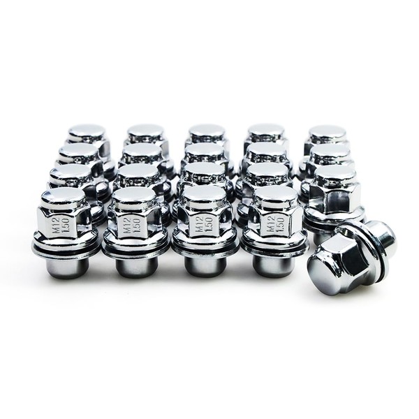 Honishen Set of 20 12x1.5 Mag OEM Factory Washer Style 1.47" Chrome Lug Nuts for Toyota Tacoma 4 Runner SR5 Pre-Runner TRD Off-Road Limited OEM Replacement (20pcs, 6 Grade)