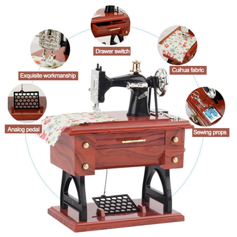 - Sewing Machine Music Box - Sewing machine music box is made of plastic material, durable to use. As a beautiful piece of miniature furniture, and a wonderful remembrance of days gone by