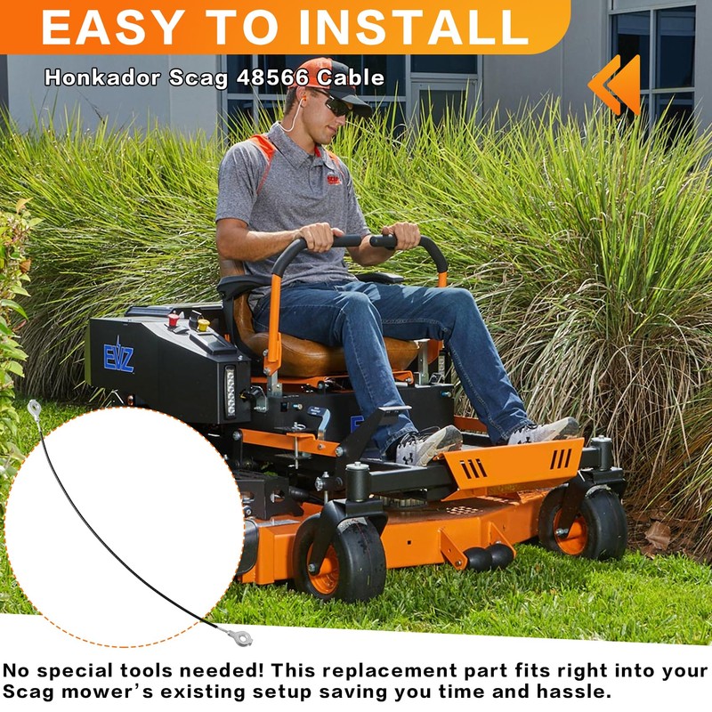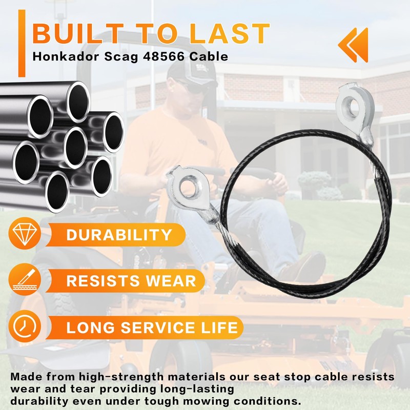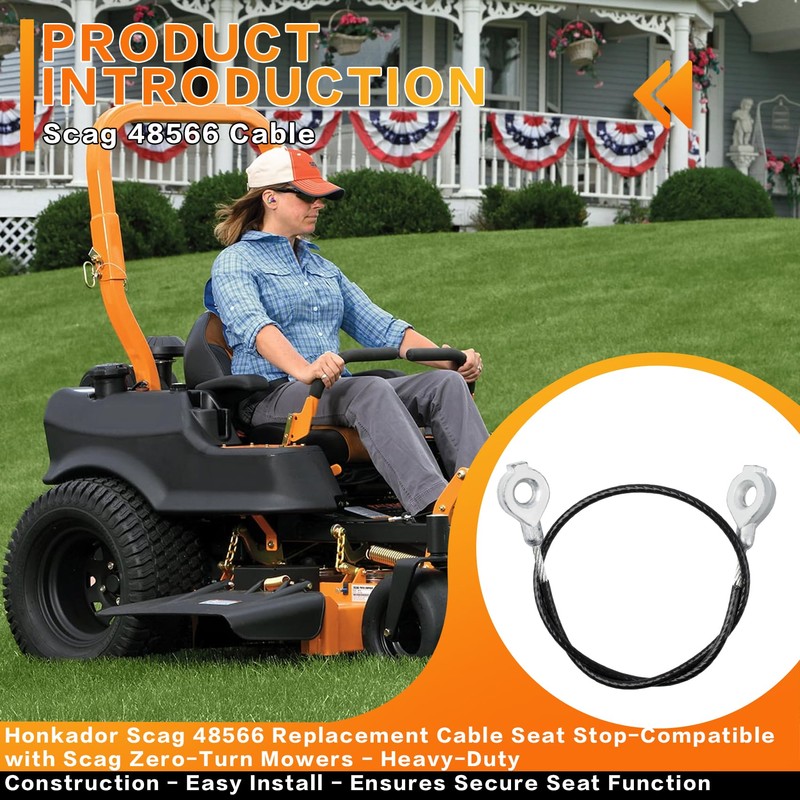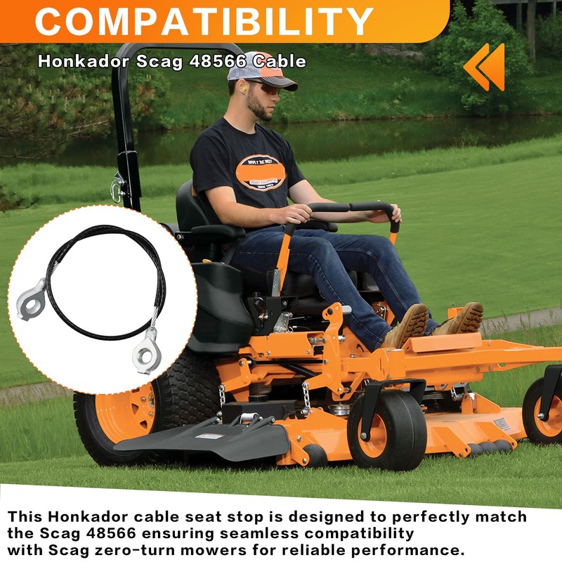 Direct Replacement for Scag 48566: This Honkador cable seat stop is designed to perfectly match the Scag 48566, ensuring seamless compatibility with Scag zero-turn mowers for reliable performance. Built to Last : Made from high-strength materials, our seat stop cable resists wear and tear, providing long-lasting durability even under tough mowing conditions. Quick & Simple Installation: No special tools needed! This replacement part fits right into your Scag mower’s existing setup, saving you time and hassle. Safety & Stability Guaranteed: Keeps the seat securely engaged while mowing, preventing accidental slips and ensuring safe operation on uneven terrain. Trust Honkador Quality: We stand behind our products with reliable craftsmanship and excellent customer support, so you can mow with confidence.