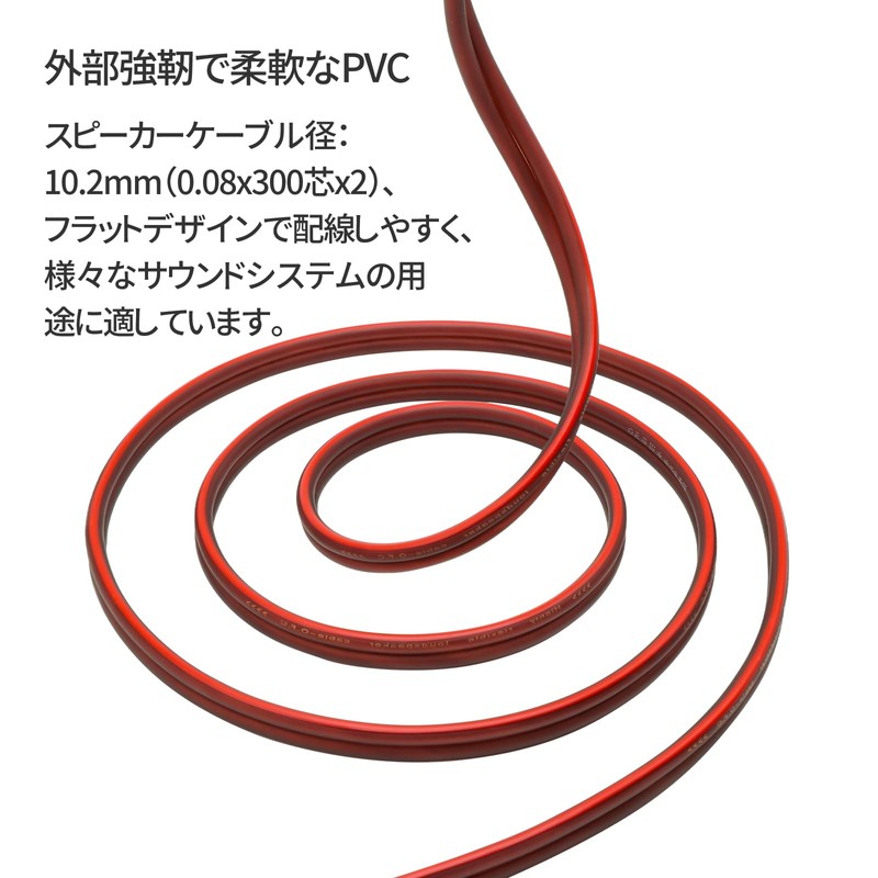 - Cable: 0.08 x 300 cores x 2, Speaker wire cable diameter: 10.2mm, strong and flexible PVC coating, wear resistant, acid resistant, alkali resistant, soft to touch a long life