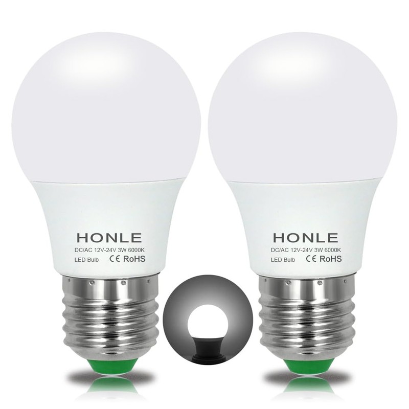 Honle E26 LED Light Bulbs 3W 12V Low Voltage Daylight White 6000K Edison Standard Screw Base 25W Equivalent for Rv, Boat, Off Grid Solar Panel Project, Pack of 2