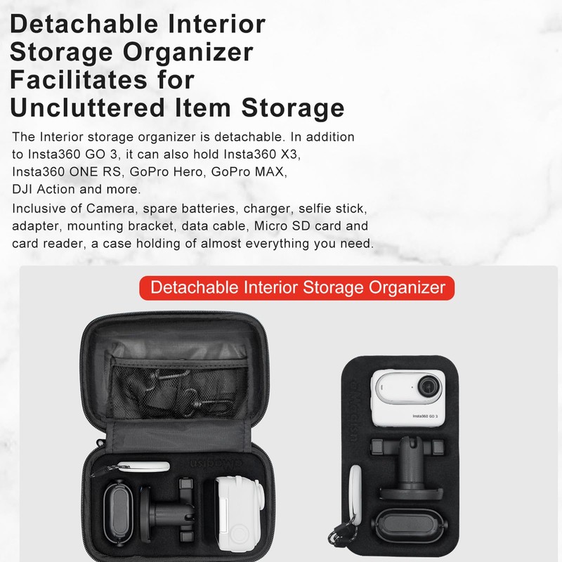 Honlyn Carrying Bag Compatible with Insta360 GO 3 Storage Bag Sports Camera Action, Compatible with Insta360 GO2 Accessories (Grey)