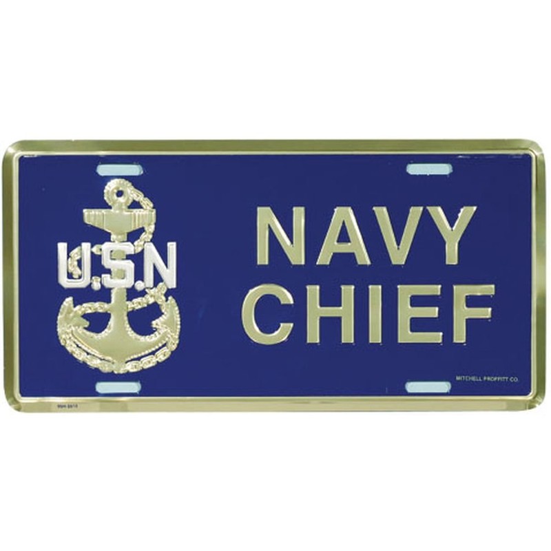 Our Navy Chief E-7 License Plate is made of heavy gauge aluminum and is accented by its embossed design.