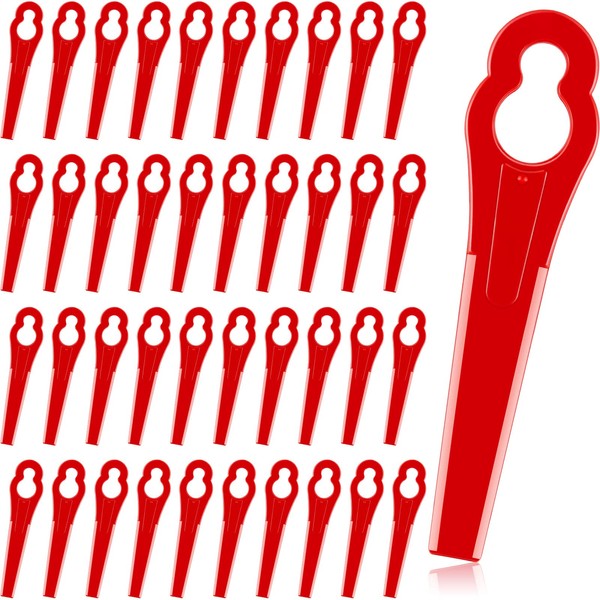 Honoson 50 Pieces Plastic Trimmer Blades Replacement Mowing Grass Wacker Nylon Blades Compatible with Polycut 2-2 3-2 FSA 45 57 FSE 52 (Red)