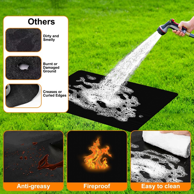 - 【Leicht zu Reinigen und Aufzubewahren】Die Grillmatte unter dem Außengrill ist wasserdicht und leicht zu reinigen. Einfach mit Wasser und Seife abspülen oder abspritzen. Ein kurzes Abwischen mit einem feuchten Tuch stellt den ursprünglichen Zustand wieder her und ist bereit für die Wiederverwendung. Die Grillmatten lassen sich außerdem platzsparend und leicht zusammenfalten und so einfach verstauen.