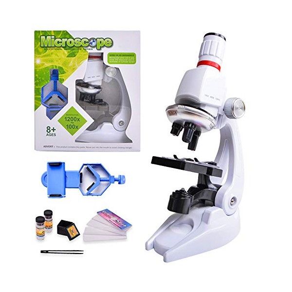 HONPHIER Kids Microscope 100x 400x 1200x Microscope for Children Microscopes Set Microscope Kit Kids Toys Science with Adjustable Phone Holder