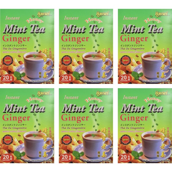 Honsei Instant Ginger Honey Mint Tea, 15g/0.52 oz.20 Sachets Each Box - 6 PACK