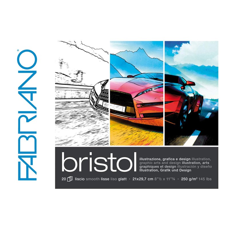 Honsell 19002129 Fabriano Bristol Pad, DIN A4, 250 g/m², 20 Sheets, Ultra Smooth Surface, Very Erase-Resistant, Ideal for Illustrations, Graphics and Design