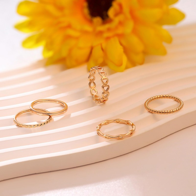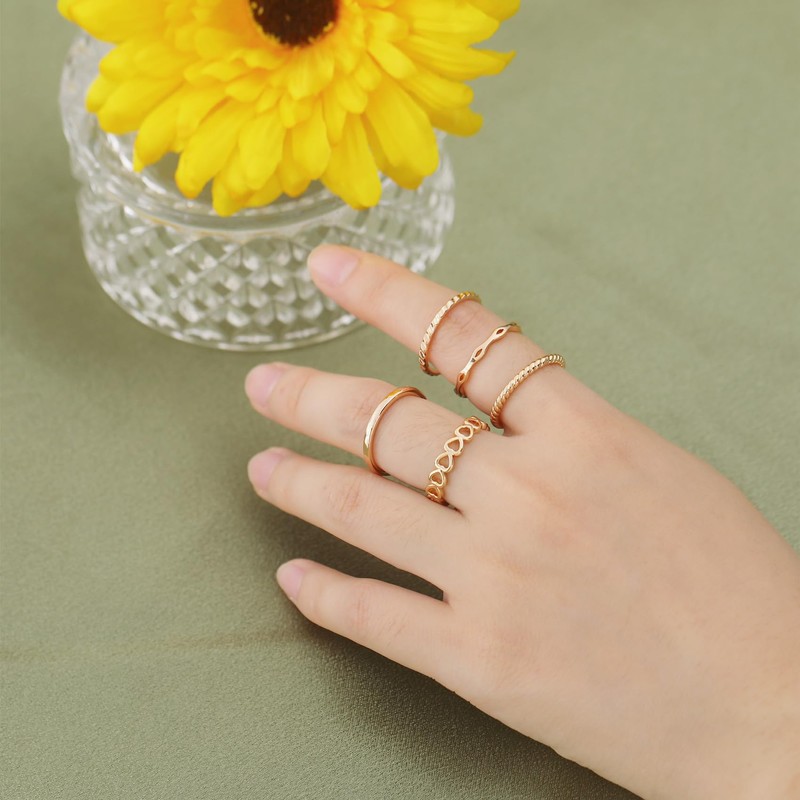- Trendy ring set:One pack contains 5pcs band rings for women with different style, Simple Twisted Rings, Heart Rings, Wave Rings, Plain Eternity Rings, simple elegant, versatile and classic. These minimalist thumb stackable rings set look shine and beautiful perfect for for most women. Making You More Elegant and Refined.