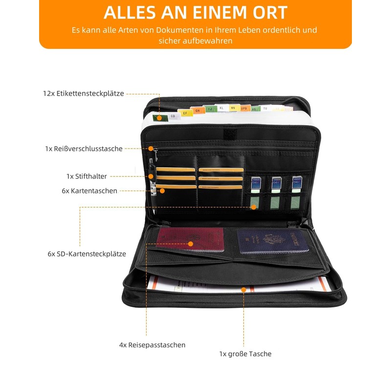 • Fireproof, safe protection: A4 expanding file made of 3 layers of high-quality, fire-retardant, non-itchy, silicone-coated fibreglass that can withstand temperatures of up to 2000 °F. Document organiser provides your important documents with the greatest possible safe protection in case of fire. A4 document folder is also very light and you can take it with you at any time in emergency situations