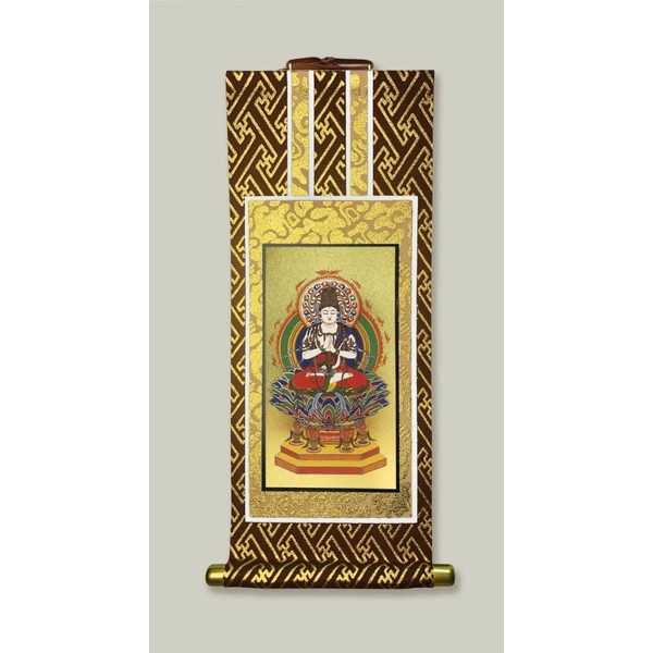 Honzon Wall Scroll, Dainichi Nyorai Buddhist Altar Wall Scroll for Shingon Sect (20s, Shingon Sect Brown Gold)