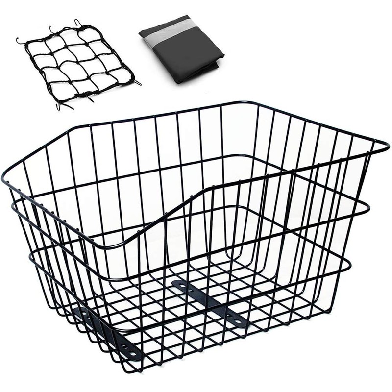 - ✅ HIGH-QUALITY STRUCTURE: The bicycle rear basket is forged from high-quality metal wire over 3mm, which is not easy to deform, the bearing is stable, has durability and reliability. The exterior of the rear bicycle basket has a rust-resistant coating that is strong and rust-resistant. Easy to maintain-Wipe clean with a damp cloth, so you can use it for a long time with confidence.