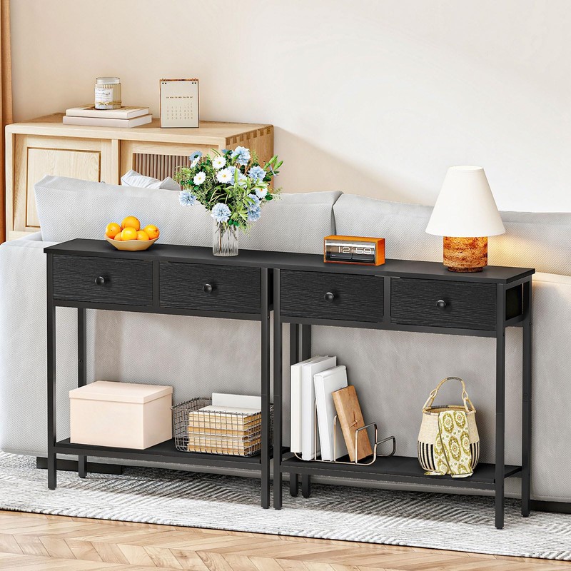 - 2-Tier Storage Spaces: The 2-tier console table includes 2 wooden shelves and 2 spacious non-woven fabric drawers below the wooden top. 1 tier open shelf design allows you to place books, vases, DVDs, storage boxes, etc. assuring your desktop is more tidy and satisfying your various needs