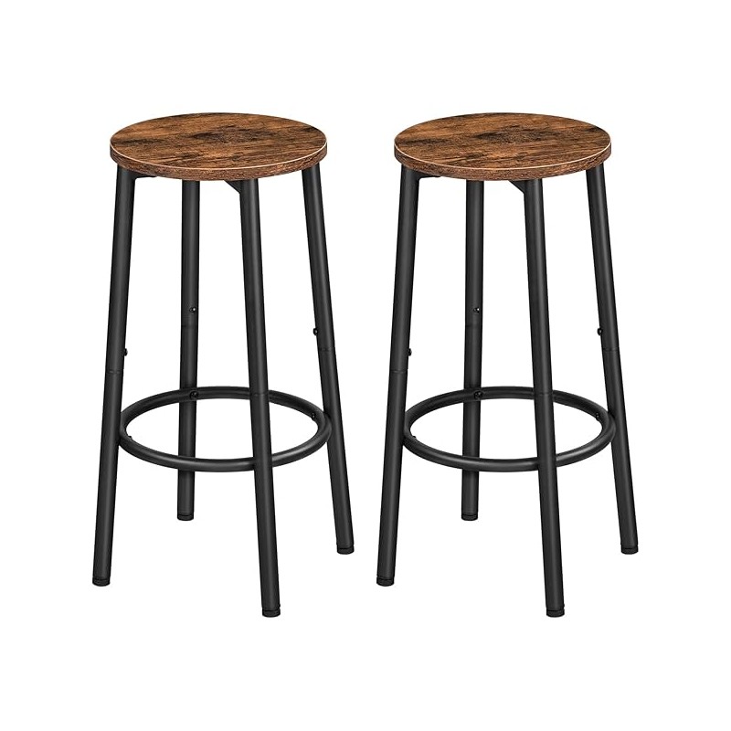 HOOBRO Bar Stools, Set of 2 Bar Chairs, Kitchen Round Height Stools with Footrest, Breakfast Bar Stools, Sturdy Steel Frame, for Dining Room, Kitchen, Party, Easy Assembly, Rustic Brown BF03BY01