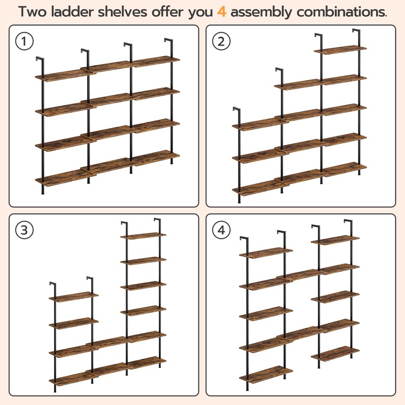- DIY Your Bookshelf: The unique structural design allows you to combine this wall-mounted ladder shelf at will. If 2 or more bookshelves are used together, there are various combinations for you to choose from. Feel free to DIY your own style