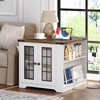 HOOBRO Farmhouse End Table with Charging Station, 23.6" Large End Table for Living Room with Side Shelves, Square Nightstand with Glass Barn Door, Large Sofa Side Table, White and Walnut WH600UBZ01