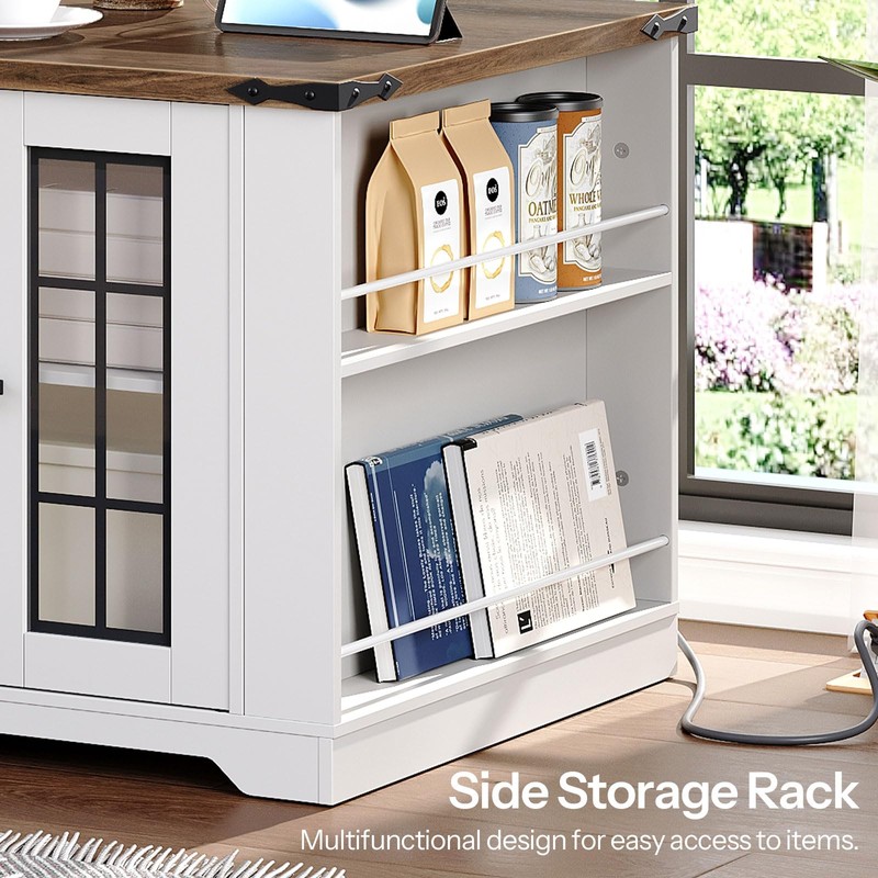 - Farmhouse Charm: The white and walnut color scheme offers a simple yet stylish look. Paired with chic silkscreen glass doors and decorative metal accents, it exudes classic farmhouse appeal, seamlessly fitting any home decor while adding warmth and style