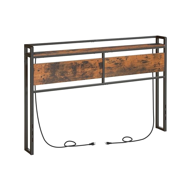 HOOBRO Headboard Queen Size, Headboard with 2 Outlets and 4 USB Ports, Adjustable Height, Storage Rack, Sturdy and Stable, Easy Assembly, Rustic Brown and Black