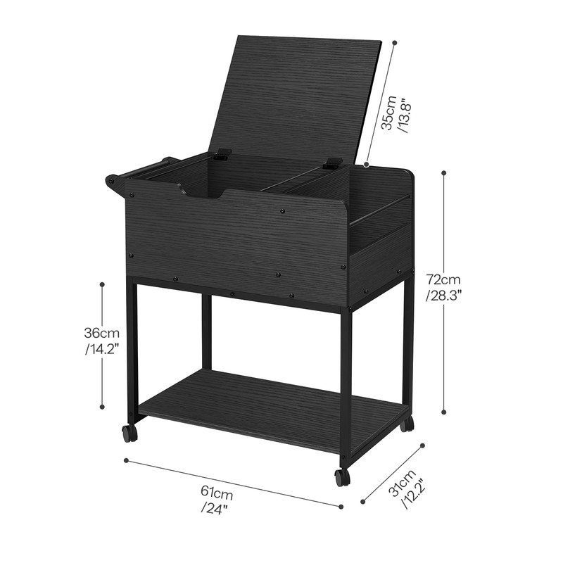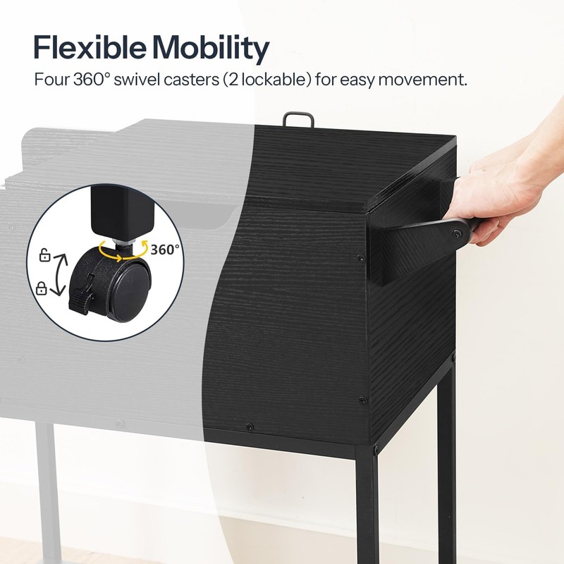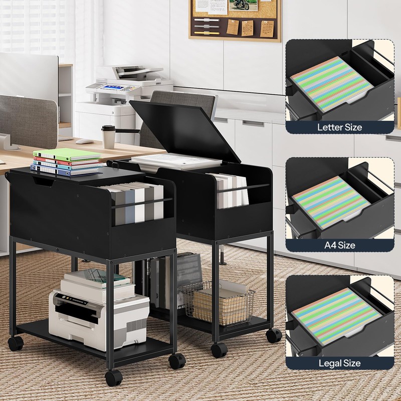 - Flip-Top Lid: The rolling file cart with wheels hanging files features a flip-up lid that opens and closes easily, making it convenient to sort and retrieve documents of various sizes, including A4, letter, and legal sizes. When closed, the lid protects files and personal items